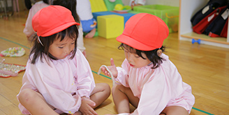 ゆたかな心・生きる力を育むために、創作活動や音楽活動など表現活動を通して、園児の情操教育に力を入れています。お絵かき・粘土遊び・折り紙・製作。創造している子供たちの瞳は自信にあふれています。時節にあった歌を、毎日楽しく元気な声で歌います。特別な日でなく、子供たちにとっては、毎日が展覧会であり、発表会であるようです。